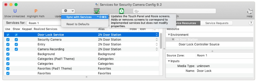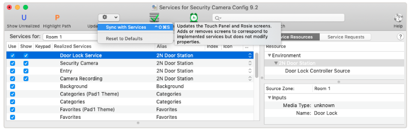 Select Update UI Screens to sync the TrueControl II screens with services.