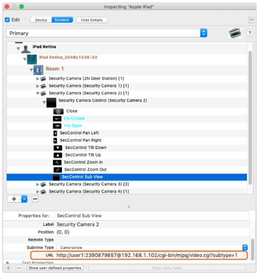 Expand the Security Camera service to locate the SecControl Sub View element.