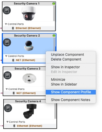 Right-click on the target component within the layout window of the configuration and select Show Component Profile.